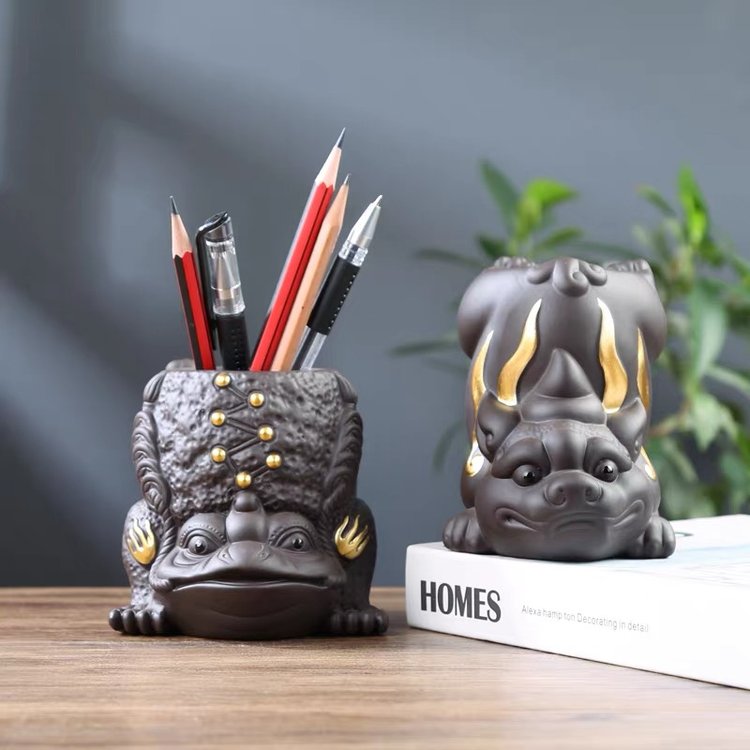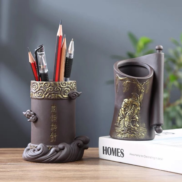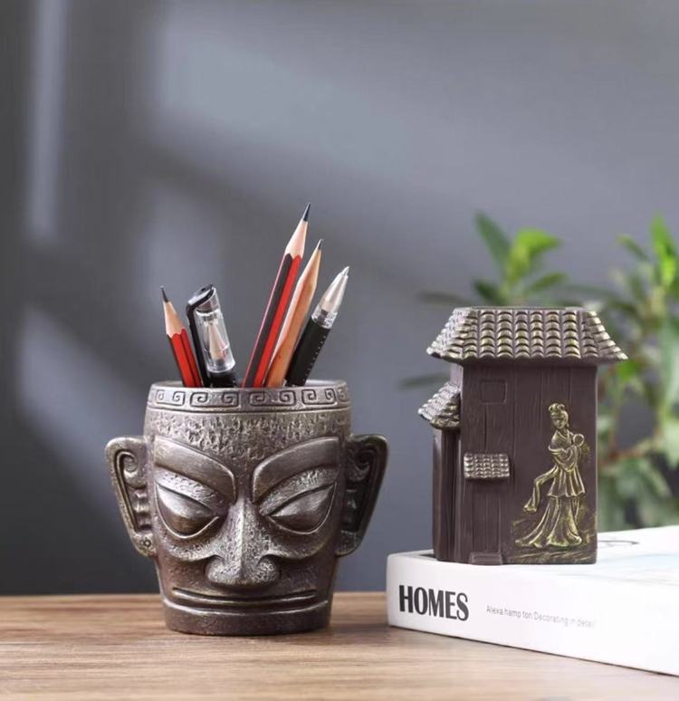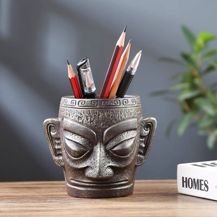 三星堆陶瓷笔筒创意花筒订办公室书房学生桌面多功能收纳摆件艺术